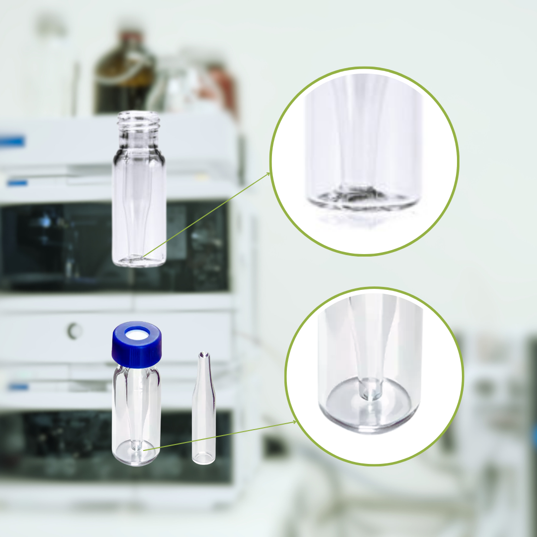 The glass insert is fused to the outer vial base in the Base Bonded series (Reference V1023/V1027 equivalents in micro format). This keeps the insert from moving or rattling while the injection is going on, which is a common reason why needles get bent in standard micro-vials.